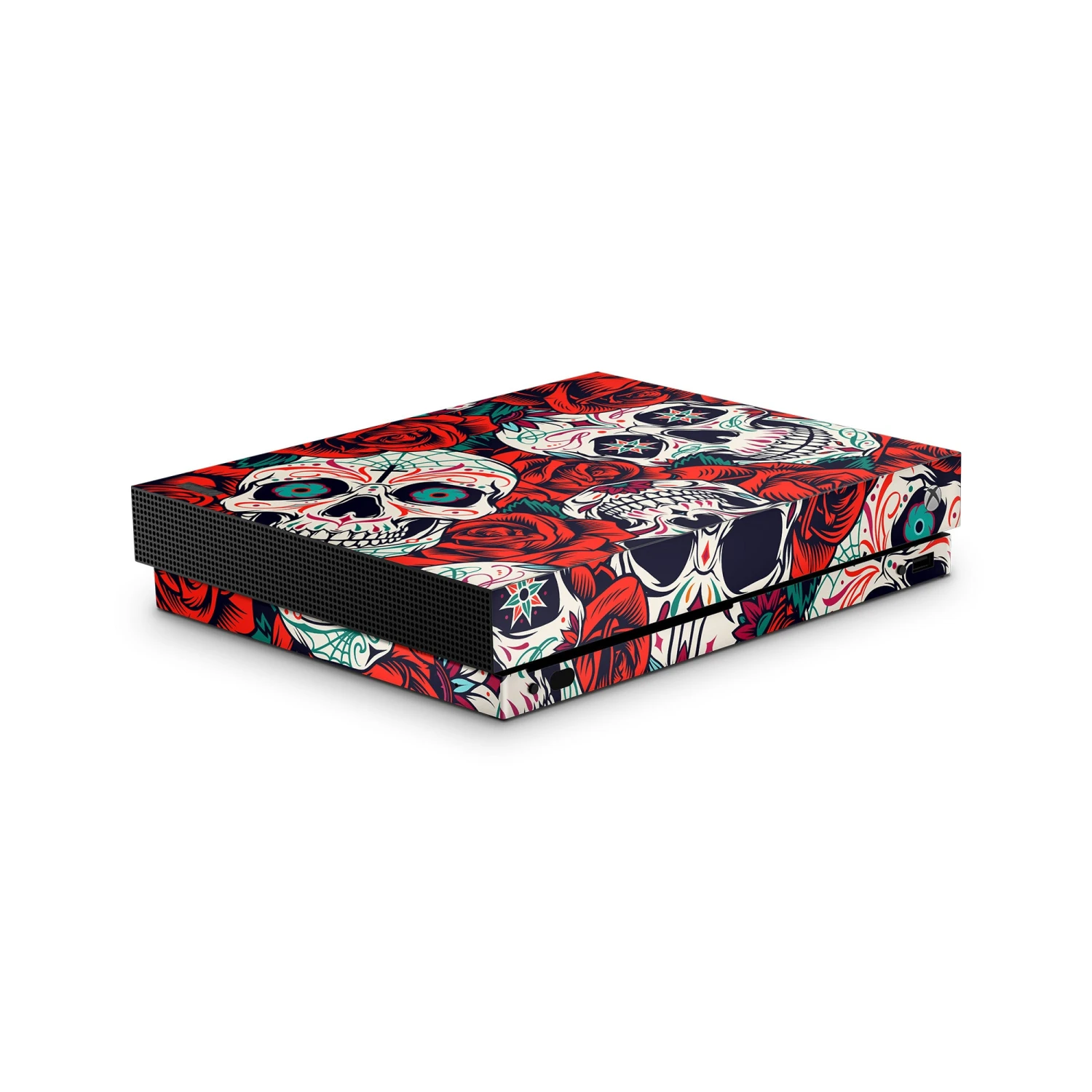Transform the look of your Xbox One X console in minutes with our sugar skull-themed vinyl console skin. GameVinyl console skin stickers for Microsoft Xbox One X are made in the USA and protect your console from scratches, dust and stains while making it look absolutely awesome.