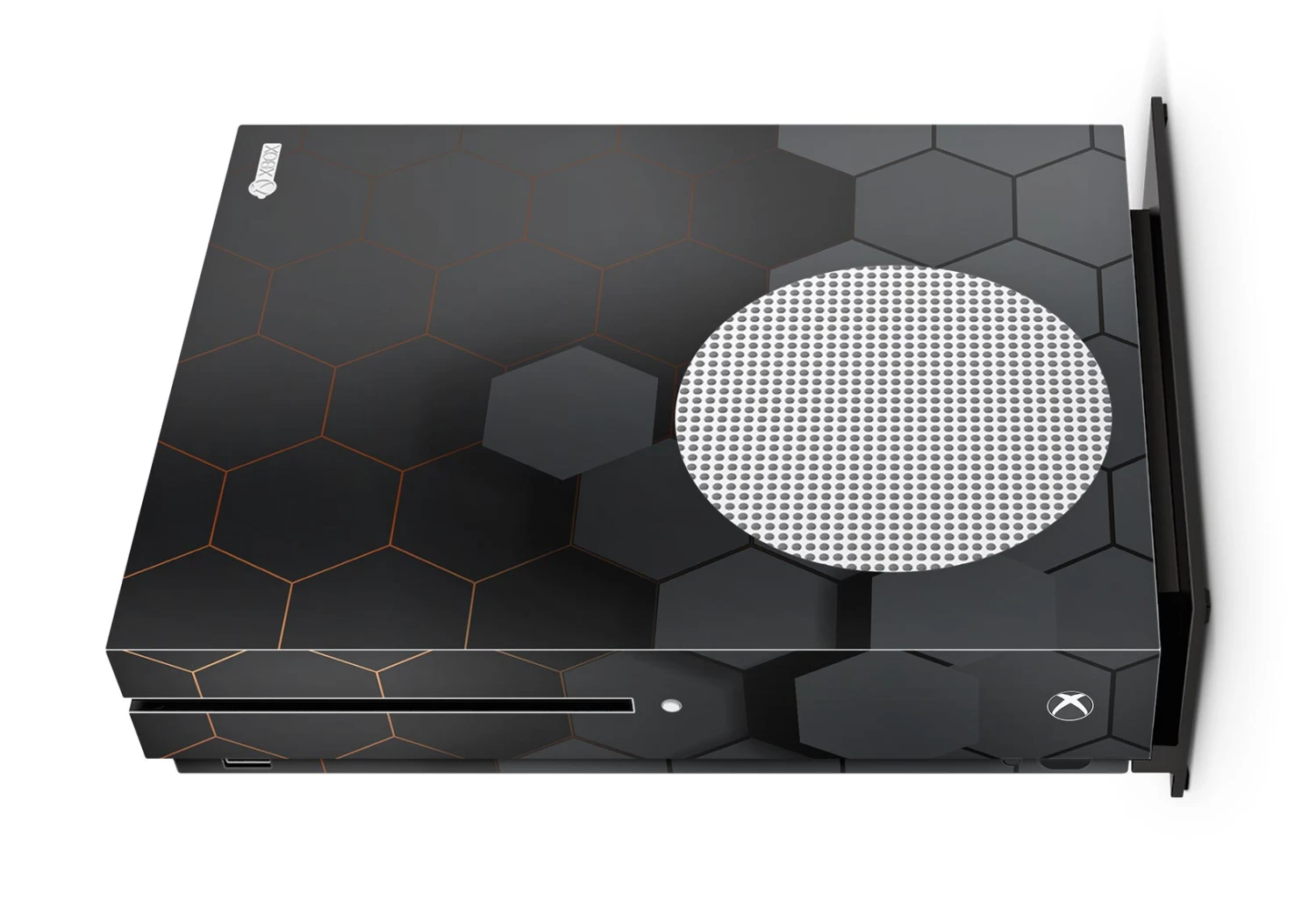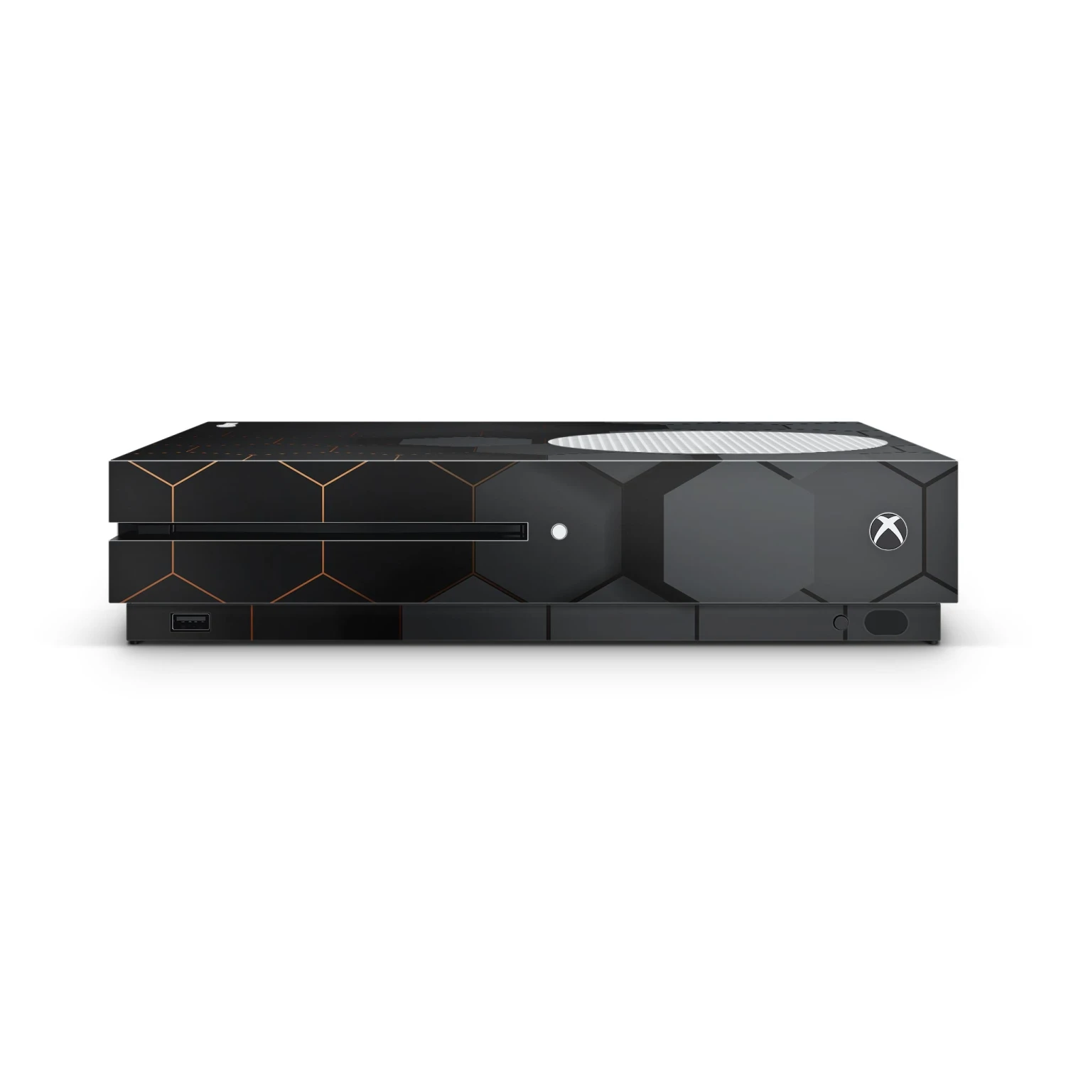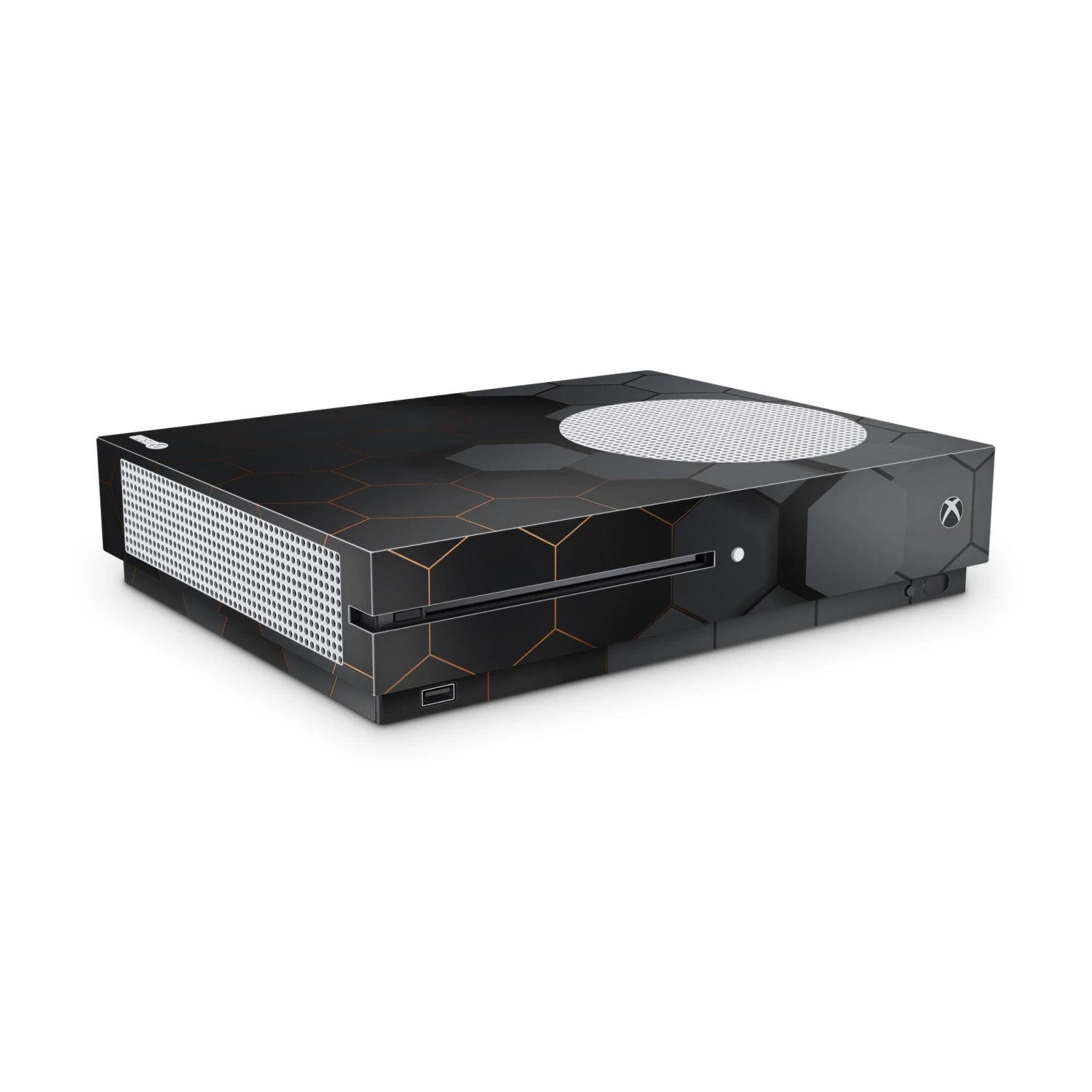 Transform the look of your Xbox One S console with the black and gold Hexed vinyl wrap. Our GameVinyl console skins for Microsoft Xbox One S are made in the USA and protect your console from scratches, dust and stains while making it look absolutely awesome.