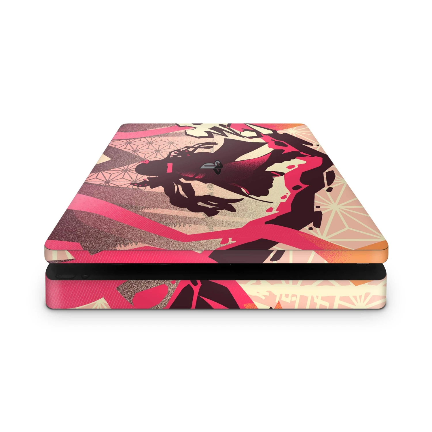 Level up your PS4 Slim in minutes with this full-coverage (including the bottom) console skin featuring original art by Hyper Twenty inspired by Demon Slayer. GameVinyl® console wraps for Sony PlayStation 4 Slim are made in the USA and protect your console from scratches, dust and stains while making it look absolutely awesome.