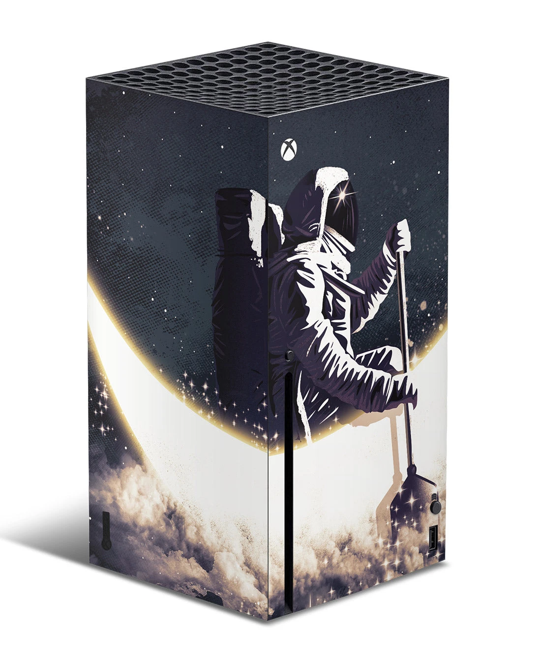 Level up your Xbox Series X console with Sail the Moon, featuring original art by Dandingeroz. GameVinyl console covers and skins for Xbox Series X are proudly made in the USA and are made with premium quality vinyl, which will help protect your console from scratches, dust and stains while making it look absolutely awesome.