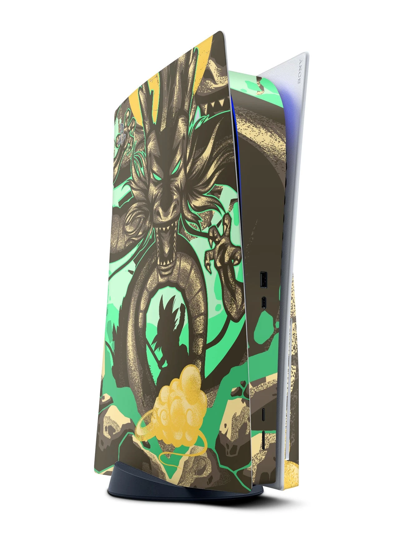 Level up your your PS5 Pro, PS5 Slim Disc, PS5 Slim Digital, PS5 Disc or PS5 Digital edition with Shenron’s Revenge, featuring Dragonball-inspired original art by Hyper Twenty. GameVinyl console skin stickers for PlayStation 5 are made in the USA and protect your console from scratches, dust and stains while making it look absolutely awesome.
