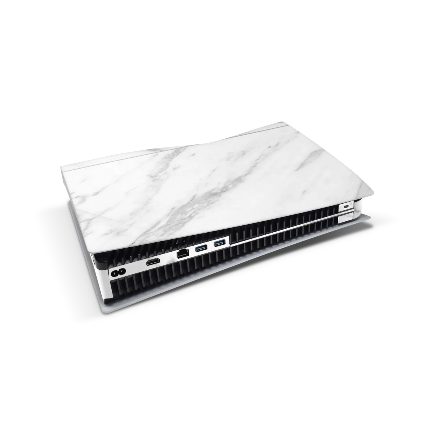 Level up your PS5 Pro, PS5 Slim Disc, PS5 Slim Digital, PS5 Disc or PS5 Digital console in minutes with the White Marble console skin! GameVinyl console skins for Sony PlayStation 5 are made in the USA and protect your console from scratches, dust and stains while making it look absolutely awesome.